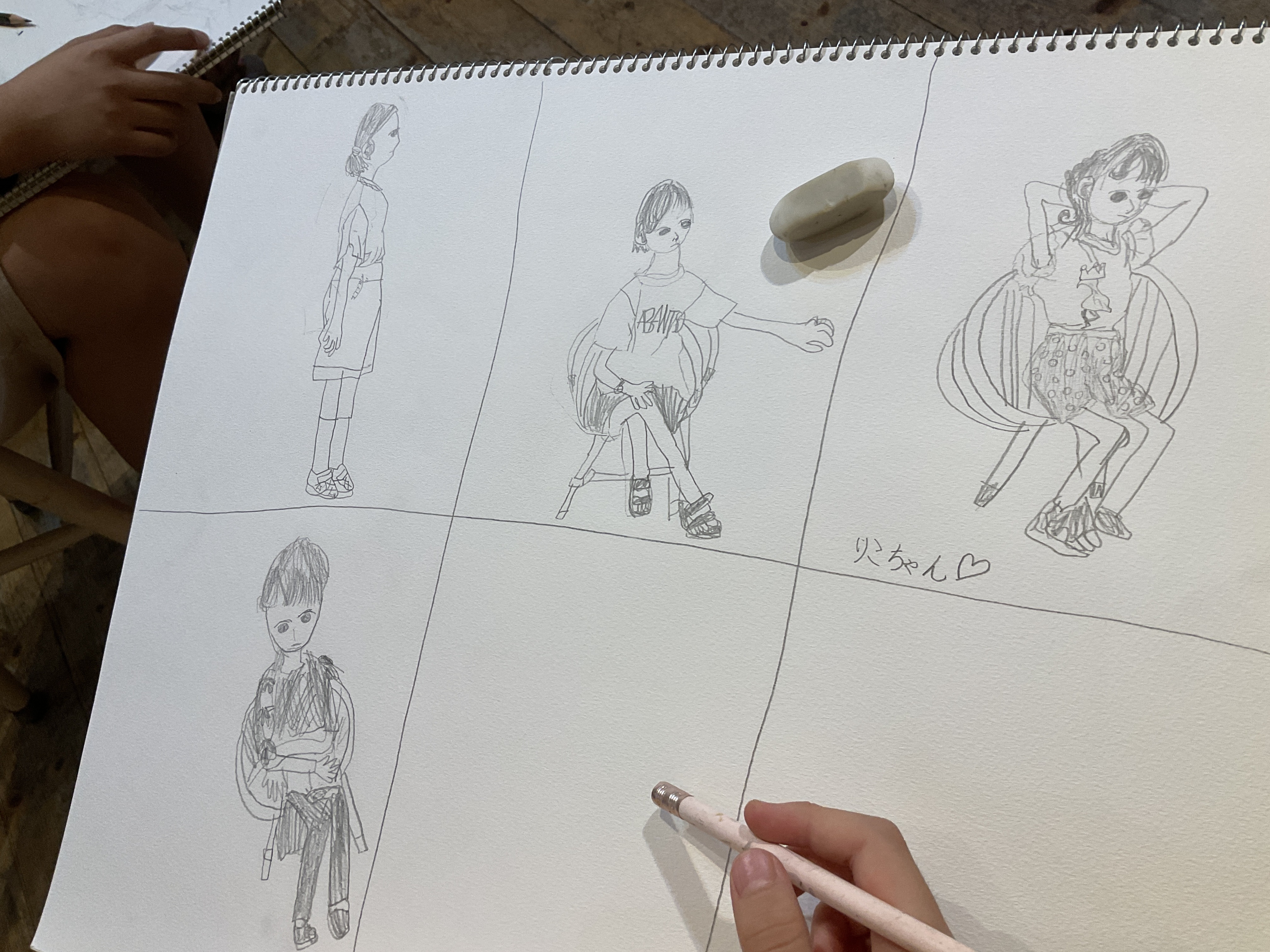 うまく描こうとは思わず短時間で集中して全体のかたちを捉えながら