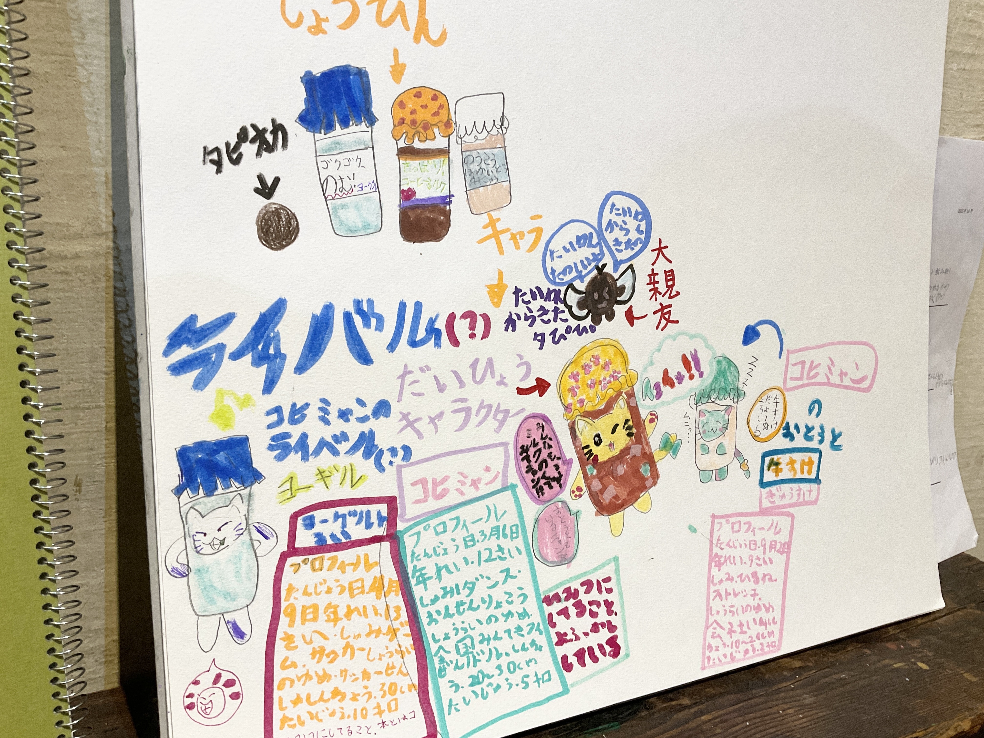 小学生クラスは、「飲み物のキャラクターデザインを考えよう」